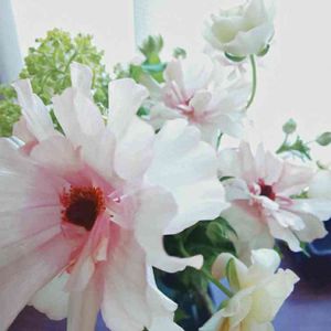 薔薇もだいぶ終わりに近づき夕方切り詰めていると通りがかりの方がまだいいのでは?毎日楽しませてもらってると言われて嬉しくなりました(^^)そんな中、最近主人購入の杏は綺麗に咲いています。 ホーラはなんだか一変し、違った顔を見せてます。 今度は俺の番(勝手に男になってるし🙄)と勢いよく成長しているビバーナム。すみません😱アナベルの間違いですね。 昨年水切れか、弱り鉢増ししてやったドドナエアはなんだか葉の色に似合うアンティークなお花を咲かせています。