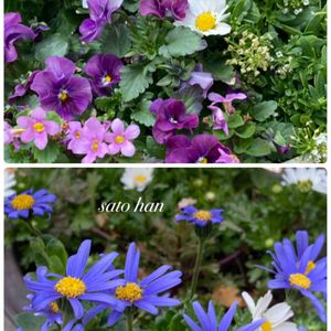 可愛く風に揺れながら 咲いてるお花たち〜💜🤍💚🤍💖
