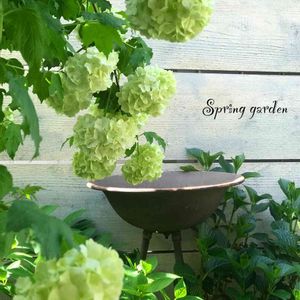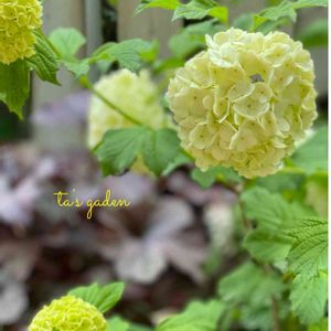 こんにちは😊 今日はお天気ですが、 私が雨より苦手な強風が🌬 家の中で待機中です。 庭のビバーナム・スノーボール ライムグリーンから白色に変わっていく 花のグラデーションが素敵✨ 庭植えに見えるかもしれませんが、 大きくなりすぎないよう、鉢植えにして あります。