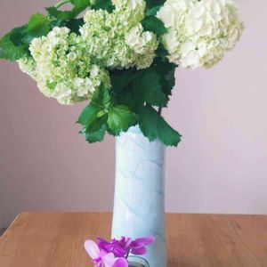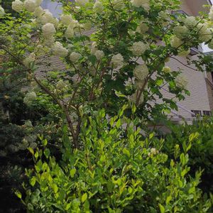 ビバーナム”スノーボール” 地植えにして7、8年目? 今年はたくさん花を付けてくれました♪ これからだんだん色が変化してくのも楽しみ♪