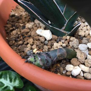 時期的に涼しくなってから鉢替えするか迷ったけど子株が大きくなってきたし、根詰まりしてそうなのも気になったから やらない後悔よりもやって後悔しよう。やったら学べることがある、ということで鉢替え。 そしたら、子株がもう1ついた∑(๑ºдº๑)!! あと子株になりそうな感じの緑っぽくなっていた根もあった。 根はちょうど良い乾き具合で鉢替えしやすかった。 今度はいつ株分けするか。どうしようかなぁ。群生させてみようかな。ハニーで見たことが無いし。