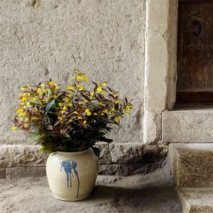 蔵カフェにて 庭の花 ツキヌキオグルマ ルリダマアザミ