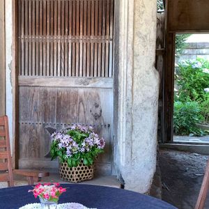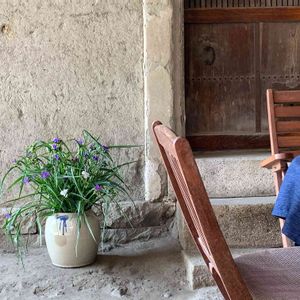 前pic→ 庭からとってきた野紺菊 花の少ない土蔵の前に…似合うかしら? 冬には蔵カフェは閉店します 蔵カフェ☕️…ってかってに呼んでます 庭を訪問してくれたゲストや友人とお茶するところです😊