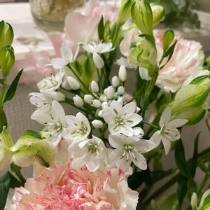 真ん中の白いお花、可憐な感じでかわいいのだけれど、一体何という名前だろう?
