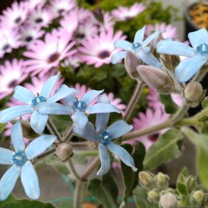 (*˘︶˘*).。*♡ 冬越し組のブルースター❀が 咲き出したんやおね 去年出来た種は友の所へ…… もう咲いたかなぁ〜