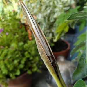 (゜o゜; ある日突然に その日はやってきた! まだまだだと思っていた ブルースター🩵の種 弾けて ひげじいちゃんの登場(笑) 始めまして(_ _)