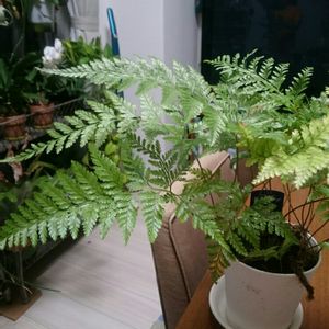 西洋シノブ ミニポットで購入してからぐんぐん育って溢れてる。 大きいのに植え替えてあげたいけど大きいとこに植え替えるとどこまでも広がりそうで、悩みます(;´д`)