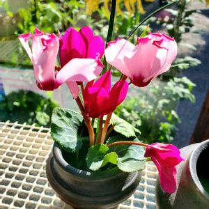 バーベナ ピンクバレエ 後ろのヒツジは笠間焼です