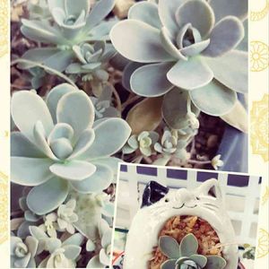 最近、子持ち蓮華を投稿してる人が多い気がするから私も~⤴️ 冬に数が減ってしまったけど可愛いから許す❤️ランナーがたくさん出てるから増えるかなと期待😃✨ 本当は斑入りなんだけど、殆んど先祖返りしてしまった💧 たまにゃんの苔が枯れてしまったのでお遊びで子持ち蓮華を咲かせてみました🎵