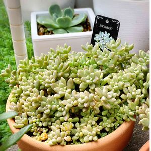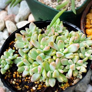 アロマティカスと子持ち蓮華🪴 アロマティカスはちょいちょい増えてる笑 子持ち蓮華は暑さで負けちゃうか心配だよ〜💦 もう1つの多肉ちゃんの名前がわからない〜 サンバーストって名前みたいです🪴 教えていただきありがとうございます♡