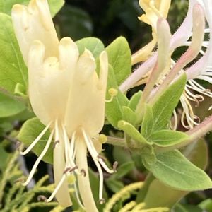 スイカズラ✨ GSで知ったお花✨ 今朝の庭バラ🌹 ③ベビーロマンティカ ④ピエール ⑤イルミナーレ🍃