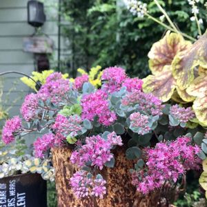 今日の花 ❇︎ミセバヤ❇︎ 枕木の上と ハンギングの 今日のミセバヤさん達