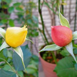 黄色さんオレンジさん .。゚:*:✼.。 我が家の薔薇 暫くお休みしていたゴールドバニーとフレグラントアプリコットが幾つか咲き始めています。 同じくらいに蕾を付け始めたので、開く様子をカップリングにしてみました💛🧡