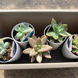 ダイソー多肉植物part3✨ 一個だけ『パキフィツム』とありましたが 他は名前が全然わかりません😅💦 それにしても私、 寄せ植え下手だなぁ🤣🤣