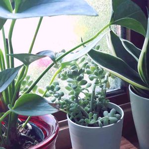 多肉にハマりだした頃にダイソーで買った銘月と思われる多肉、ずっと二頭というか、枝分かれしたままカッチカチの土に植わっていたけど、お気に入りすぎて手を出せずにいたのを思い切ってチョッキンして、良い土にデュクシ!しました。 いい色になってきてたスノージェイドも同じく。 無事に根付いておくれ。
