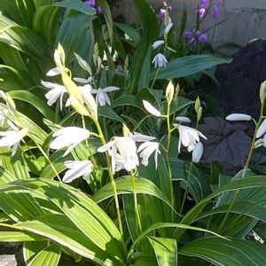 シラン満開🌼 葉っぱ🌱はいつの間にか斑入りになっていた。🎶🤗