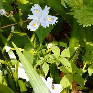 咲きました😃 皆さんに遅れること.......... 植え替え為でしょうか❓🙄 斑いりのシャガは今年は咲かないです😥 連投すみません😢⤵️⤵️🙏