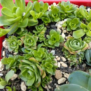 ■オロスタキス ・薄紅蓮華 1月頃にお連れし先日の植え替えで本日初水やり。 オロスタキス属って事なんで子持ち蓮華の仲間 多分、暑さに弱いだろうな…