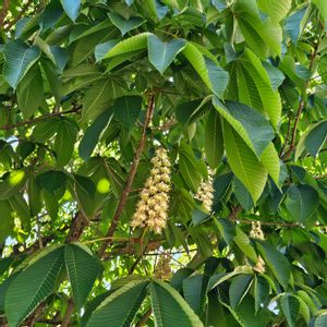 🌳トチノキ🌳 (ムクロジ科 トチノキ属) 🏷️目に青葉~2025 1枚目 宜しくお願いします🙏😊 モタモタ投稿すると期限が切れてしまいそうなので4枚続けて投稿しようと思います。最後の1枚 コメント開きたいです🙏 ①5月中旬 たくさんお花が咲いてました🌸 ②同じく5月中旬 若木 30cm程だったかな🌿 ④去年8月中旬 葉っぱ🍃素敵です😍 種 去年9月下旬にたくさん拾えました こんなところにトチノキが…🌳 今年も拾いに行こっ🤣 ③去年11月下旬 素敵な色になりました🍂 ③④の順番間違えました🙏 ⑤今年の3月上旬 冬芽 何年か前 花友さんにネチネチだと教えてもらって触って確かめました✌️しっかりしてる上に大きくてネチネチとは…最強な感じ😄 コメント💬閉まれ〰ゴマ💕🙏