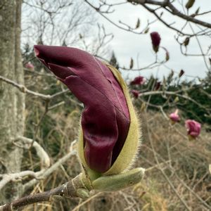 おはようございます🙋♀️ 🏷️今日のお花 モクレン モクレン科 外出先 紫木蓮(シモクレン) 紅紫色のお花です✨ ポッテリと大きな花弁が開こうとしていました💖💓 綺麗な色に見とれパシャリ🤳 3/21撮影