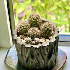 笠間焼きの盆栽鉢。紅葉を枯らしてしまったのでサボテンを入れてみた。