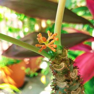 マレーシアで咲いていたお花です。 イソギンチャクからココナツの実がなったように見えます。 お名前分かると嬉しいです!