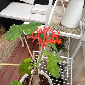 種から育てたサンゴアブラギリ💓💓1年3ヶ月たち、サンゴのような赤いお花が出て来ました♥♥♥ちょっと嬉しいですー(o^^o)