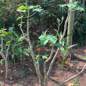 うちのサンゴアブラギリ🪸 お花が一輪咲いたのですが 葉っぱの勢いの方がヤバーい😆 一気にでっかくなるー 下からの姿大木感出てるかな⁉️ そして天気が気持ちいい‼️ 久しぶりに出た太陽と一緒に〜☀️📸 今日も良い一日を〜🎶🎶
