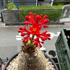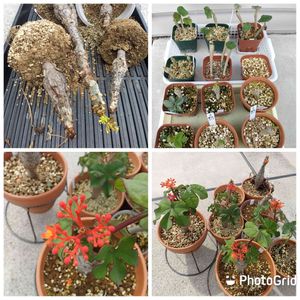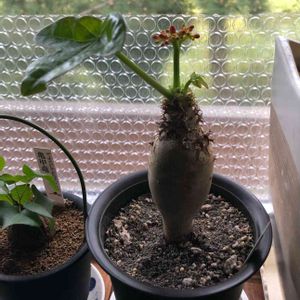 ↖️今年もいっぱい枯らした~😱 サンゴアブラギリ。 春に暖かくなったと水やりや外に出す タイミングを焦るとこうなる😨 とにかく完全に暖かくなってから! 水やりは心配になるくらい控えめに! あと、種鞘があるからと気温が下がりだしても 水やりを続けるのは絶対にダメ!🙅 うちは暖房しないので秋までに採れなかった 種はすっぱり諦める! もったいない精神が株を腐らせる😥 と毎年思っても懲りない… ↗️実生のチビたち25本+α そろそろ独立させよう。 ↙️↘️ただいま絶賛💠開花💠受粉中 枯らした分また増やす!😓