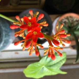 サンゴアブラギリの花 肉厚で可愛い💕 もっとサンゴをイメージしてたけど、意外と普通。 しかし、この子の葉っぱの成長の速さにはびっくりだわ〜😅