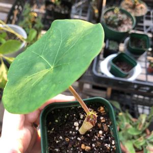 日々変化?成長⁇するサンゴアブラギリさん。 最初に植えた鉢との相性が悪かったのか、すぐに3枚の葉は失ってしまいました。 でも黒のプラ鉢に植え替えたら、新しい葉っぱと花芽がぐんぐん伸びてきています。 やはり、植物には黒のプラ鉢がいいのかな〜。