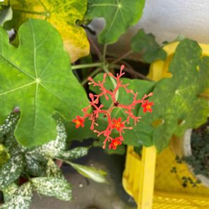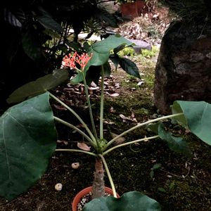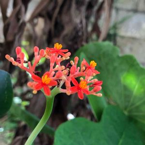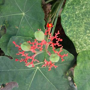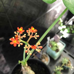 神代植物公園 #1 台風14号の影響も少なく、また来園者もごく僅か😊 温室入口で、サンゴアブラギリ。 Jatropha ヤトロファ、トウダイグサ科