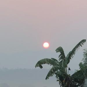 別府温泉海地獄 地獄熱噴気利用温室の植物 右側は、ワイヤープランツ、モンステラ、珊瑚油桐 (サンゴアブラギリとRinさんに教えていただきました) 左側にサンゴアブラギリの花のアップ。 2018年2月20日pic