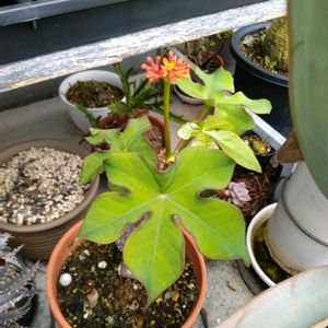 サンゴアブラギリ今年初のメス🌼開花 1、2枚目はメス🌼🌼🌼 3枚目のオス🌼花粉をこちょこちょしておく 4枚目〜1枚目のサンゴアブラギリの鉢。 色々と野良たちも育っている😁しばらくこのままいこう ☔️☁⛅️☁気温あがらずヒンヤリ😔