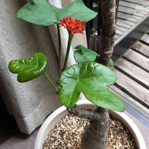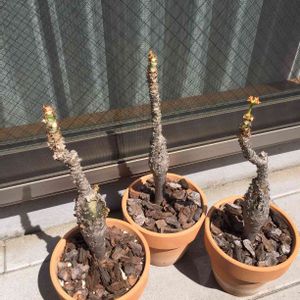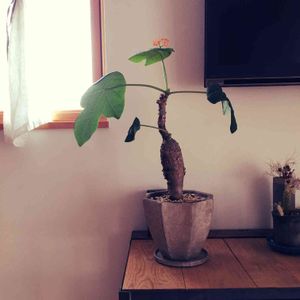 おはよーございます☀️☀️☀️ 播種して約1年、やっと花芽が上がって来ました😍 10粒撒いて9粒発芽、6株はお嫁に行って我が家には三兄弟で居ますが 花芽が付いたのはこの子のみ… サンゴアブラギリ、花は小さいけれどカワイイ花をつけてくれます🎶