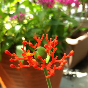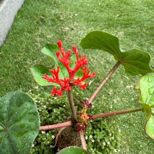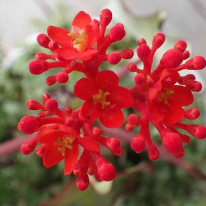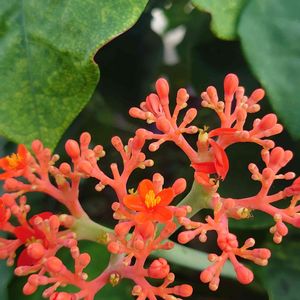 サンゴアブラギリ(ヤトロファ・ポダグリカ)、ずーっと蕾でしたが、ようやく開きました❁⃘