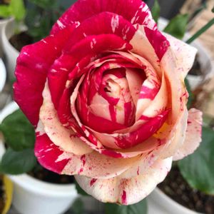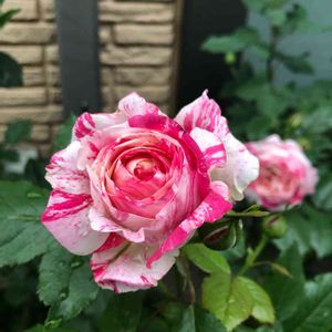 センチメンタル♡ 我が家のバラ🌹 今年の4番目に咲いたのは このお花です。 いつもよりピンクの分量が 少ない色合いです。