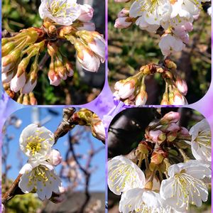 サクランボのお花があっと言う間に満開になりました💮🍒 投稿が遅くなってしまいましたが ①満開2月26日 ②③7分咲き2月24日 ④蕾2月21日 現在は散り始めています🍃 あとは実が成るのが楽しみです🍒🍒🎶