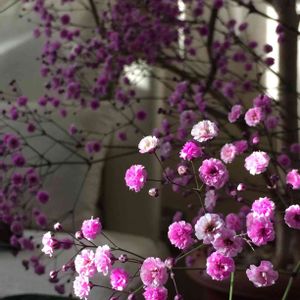 かすみ草✨ 夕方、ふと見るとピンクのかすみ草の一部分に夕日が差していました✨
