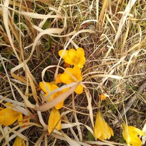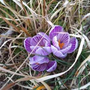 近所の公園で 枯れ草の中から顔を出したクロッカス🌻🌱