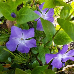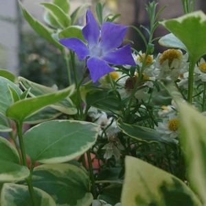 今晩は☺️🌃 今日は気持ち良い暖かさでした☀ 3〜4年前からいてくれる🌿ツルニチソウ🌿🌿だけだったけど、今年初めてお花が咲いてくれました💙🧚💙🌿