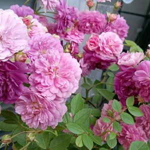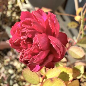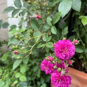 ミニバラ スイートチャリオット🌹 横張り性が強いので 枝が 四方八方に伸びてます ハンキングにした方がいいかな 香りも楽しめます♫ 3枚目は、オールドポート🌹 このくらいの開き具合が可愛い🫶 香りもよきです❣️