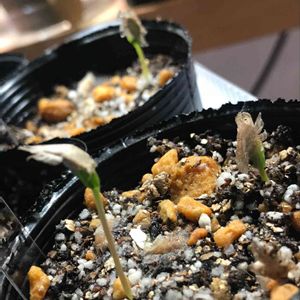 実生 フォークイエリア マクドガリー 発芽まで早かったです👀 1週間以内で種10粒中3つ発芽しました。 そのほか、種が膨らんでいるものが数個あるのでこの後もいくつか発芽しそうです。 根張りがほとんどないまま上へと伸びるのですこし埋めなおしました😅 もう少しで種殻から双葉を覗かせてくれそうです🌱✨