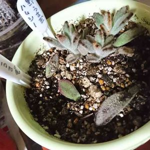 「黒うさぎ」 ベンケイソウ科 カランコエ属 黒兎耳とどう違うのかなぁ タグつけようとしたら 黒うさぎ(黒兎耳)ってのを見つけた やっぱり~