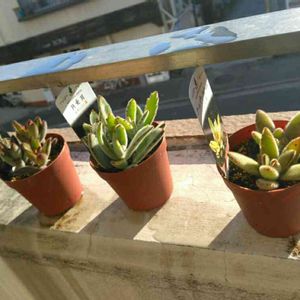冬に仲間入りしたパンテオンさん はじめは2つあったところに、子株が3つ増えてきて、その子株3つが少しずつ大きくなると、初めからいた小さめの子がいなくなりました。 新しい根は生えてきてるのに、いつまでたってもグラグラしてて根がつかない。 子株は成長してるのに、親株はだんだんしおれてきて…(◞‸◟) どうしたらいいのか分からなかったので、手持ちの多肉のメンテナンスなどもしてくれるという多肉屋さんへ行ってきました。 初めて行くお店。 突然の訪問にも関わらず、苗や土の状態をみて、寝付きやすい土を加えてもらい、 これから暑くなると鉢の中が蒸れやすくなるからと、水やり方法もレクチャーしてもらいました。 (しっかり根付いて元気な姿になりますようにー) お店には色んな苗や器、カラフルなカット苗達がたくさんあった中で、少し根っこが出ていた黒うさぎを選び、空いてるスペースに挿してもらいました。 突撃訪問なのに、快く応対してくれる素敵なお店。 ありがとうございました(^-^) 遠くてなかなか行けないお店なので、もう少しゆっくり見たかったです(T_T)