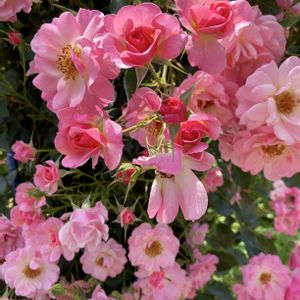 アリスの夢 〜鹿児島かのやばら園〜 今日は投稿するお花がなくて、今年5月の写真です🌹かのやばら園でめちゃくちゃ可愛いツルバラに出会いました😍💕 アリスの夢はかのやばら園生まれのバラだそうです^ ^ 30〜40輪の房咲き👏👏👏 返り咲き 半剣弁咲き 無香×→微香 中輪 宮地さんという方作出 あまり情報がなくてネット販売など探してみましたがありませんでした🥺