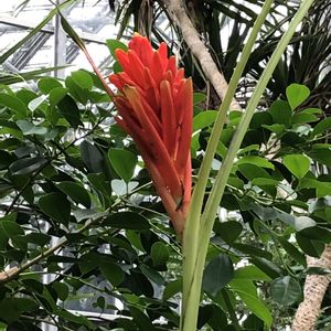 ヒメバショウ 学名:Musa coccinea Andrews 科名:バショウ科 属名ムサはバナナの仲間です。 種小名のコッキネアは鮮やかな朱色の意味です😉 熱帯の植物はいい色出しますね~😉