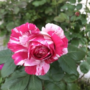 甘いスパイスの香りのセンチメンタル。 先日夜半の強風を受けて鉢が倒れてしまったけど、うちのセンチメンタル姐さんはそんなことでは負けしまへん😤 紅白の絞りが色っぽいんです☺️