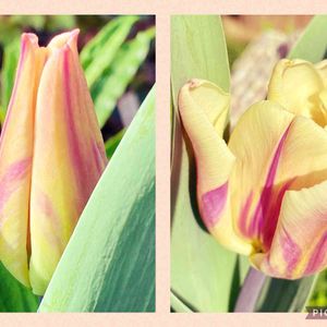 ストロベリー🍓🧀チーズケーキみたいな 美味しそうなチューリップ🌷咲きました マーブル模様が入ったチューリップなんて 初めてお目にかかりました╰(*´︶`*)╯♡ ヽ(*´∀`*)ノ♡;:♡◡̈♥︎◡̈♥︎◡̈♥︎♡;:♡