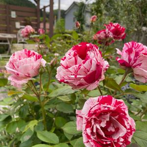 1ヶ月前に購入したばかりのバラ『祭り』が初開花しました。 清水港フラワーフェスタで見かけた絞り模様のバラに一目惚れして、帰宅後どうしても欲しくなり、ネットで同じものは見つけられなかったけど似た模様のバラを衝動買いしちゃいました。 絞りのバラ、本当にかわいい♡ 説明書には「一輪だけ開花を楽しんだら、今年は株の充実のためにつぼみはカットするように」と書いてありました。 一輪だけなら咲かせてもいいなんて、購入者の気持ちをよくわかってくれてますね😁 今日はみどりのまとめにpushしてくださって、ありがとうございます✨ 新しいフェンスの色にバラの鉢もよく似合って映えています。